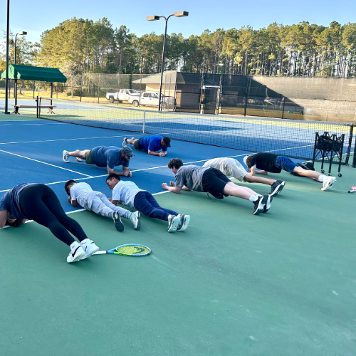 Our Tennis Fitness program is one that our athletes both love and hate. We carefully select exercises appropriate for their age, focusing on building strength and mobility specific to the sport of tennis. Topspin Tennis Camp utilizes a combination of plyometrics, bodyweight exercises, and yoga within the Tennis Fitness program. Ultimately, our goal is to help prevent player injuries during practice, competition, and match play.